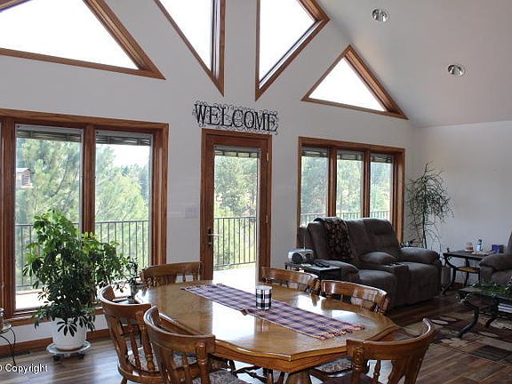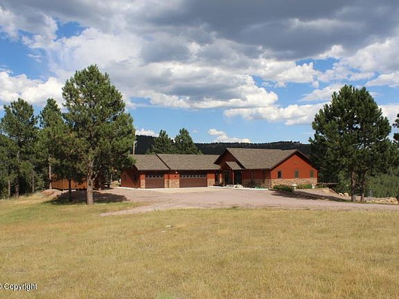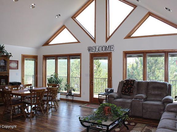 A beautiful jewel found in the ''Crown'' Subdivision among the Black Hills of Wyoming. This immaculately maintained 4 bedroom, 3 ½ bath home is situated perfectly on 2.3 acres with incredible views of the Salt Creek valley, custom built to be comfortably efficient and elegantly designed to reflect its setting. Spectacular views are afforded through the many, large Pella windows with integrated blinds, throughout the home. Upon entrance on the main level you are welcomed by a well designed entry foyer which leads you to the open concept living, kitchen and dining area. Hewn wood style flooring warms the home on the main level while the large, open feel is capped with vaulted ceilings, in peak windows and recessed lighting. Beautiful kitchen would be approved by any cook with stainless