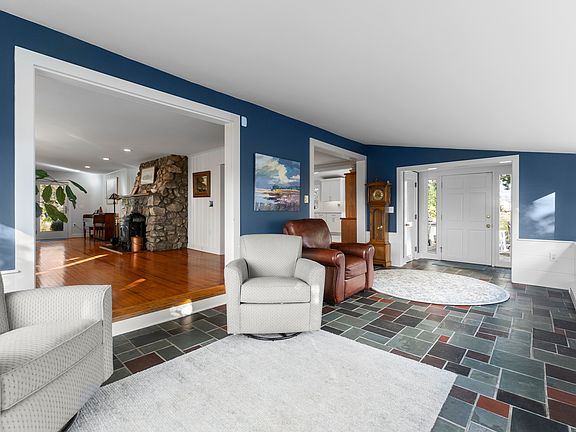 Breathtaking water views of Fishers Island Sound and Long Island Sound set the stage for this exceptional four bedroom, two and one half bath 3,688 sq. ft. custom shoreline home. Included is a .08-acre waterfront parcel with 50' of water frontage on the Mystic River on Masons Island Road with a design for dock available (see attachments)-perfect for boating and water activities. Inside, this beautifully renovated home offers a sun-filled Great Room features a striking fieldstone fireplace with Vermont Castings wood stove and comfortable sitting area that opens to a spacious, south-facing sunroom, ideal for enjoying year-round light and views. The completely renovated kitchen has quartz counters, a Kohler Farmhouse sink, Insinkerator disposal, a motion detector faucet and a breakfast nook overlooking the blue stone patio and pavers sidewalk to the park-like .88-acre grounds, creating a seamless flow between indoor and outdoor living. Unobstructed water views from your Decks. Additional highlights include First Floor Bedroom with attached Full Bathroom, a large attached two-car garage, four bedrooms, and two and one-half baths. Ideally located just minutes from Historic Downtown Mystic, with its unique shops, renowned restaurants, and vibrant year-round activities, and close to charming Stonington Borough.