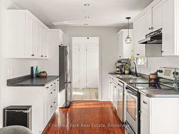 Welcome to this well-maintained 2-bedroom, 1-bathroom bungalow in Huntsville, Ontario, an ideal home for anyone seeking easy, comfortable living in a family-friendly neighbourhood. Set on a level lot with a sunny south-facing front deck and spacious rear deck, this property offers excellent outdoor space for relaxing or entertaining. Inside, the home features a bright, functional layout with modern updates including a new air conditioner, refrigerator, and dishwasher (2025). Enjoy an active Muskoka lifestyle with Arrowhead Provincial Park just minutes away - ideal for hiking, swimming, skating, and cross-country skiing. Golfers will appreciate the proximity to local courses, while families will love being close to the elementary school, hospital, shopping, and everyday amenities. Practical details such as municipal garbage pickup, a nearby bus route, and a low-maintenance yard make this an excellent option for retirees, first-time buyers, or anyone looking to downsize without compromise.This move-in-ready Huntsville bungalow combines comfort, convenience, and community, the best of Muskoka living in one welcoming package.