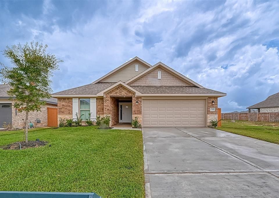 Look no further than this stunning new construction that will be ready for move-in estimate by Jan 2026. Come check out our cute little neighborhood in Kiber Reserves, just across the fairgrounds. This beautiful 1 story won't last long! Granite countertops in the kitchen and restrooms. Photos are representations of sample/stock photos, actual home will vary. Covered patio. Buyers are responsible for verifying dimensions. All 4 sides of the home featuring brick , this home offers both durability and outdoor living space for relaxing and entertaining.