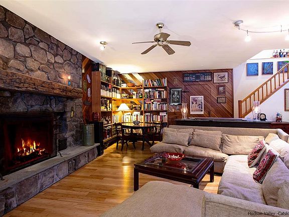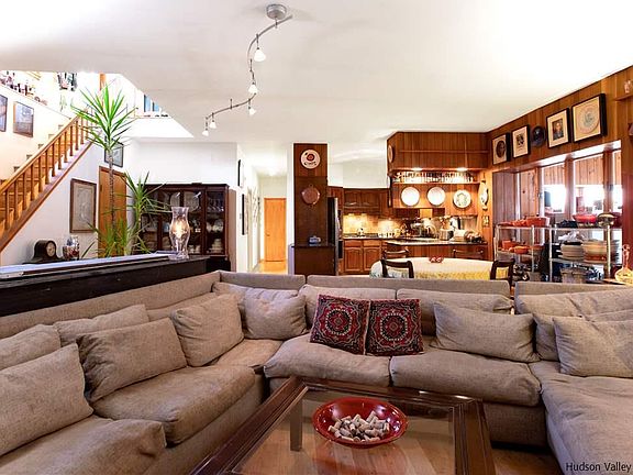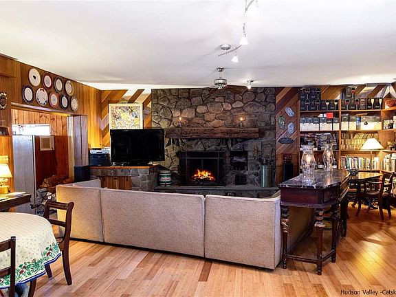 WELCOME TO HALCYON HIDEAWAY. This secluded upstate country escape comes complete with inground pool and cascading mountain creek sounds that are sure to make you forget about life's setbacks and distractions. Completely private on nearly 6 acres, this is a retreat any couple or growing family can be comfortable in. Sited at the end of a private town maintained road, away from anything and everyone, your home away from home, one that's equally special for the introvert or entertainer. You'll find a non traditional layout here with 2 full levels of living space. Upper level is flooded with natural light comprised of large living area currently utilized as the spacious home office with wood burning stove, endless windows and skylights plus a gigantic master suite with its own fireplace that walks out to private deck overlooking the creek. Full double vanity bathroom and guest bedroom round out the upper level. The lower walkout level with open floor plan is where you'll play chef to home cooked meals and long gazes at the massive stone fireplace. Another guest bedroom, full bath, sauna room with private shower, and den with another wood stove complete this warm and inviting space. Take advantage of multiple decks, 2 large fireplaces, 2 separate wood burning stoves, inground pool with patio surround, all while taking in year round sounds of the creek day and night. Just the right amount of woods and lawn, a property that doesn't need endless upkeep. A wooded sanctuary in a AAA location less than 10 minutes to conveniences on Main Street in Gardiner and less than 15 minutes to shopping and dining in Historic New Paltz. Minutes to world class rock climbing in the Gunks, endless trails in the Mohonk and Awosting Preserves, as well as quick access to the Shawangunk Wine Trail and other must haves like yoga, craft distilleries, local brewers, and farm stands. Surround yourself with peace, quiet, and natural beauty, in a setting that is extremely hard to find these days. Truly a home for all seasons and your guests will find it hard to leave. If you've ever wanted a place to disconnect from the rest of the world look no further. Away from it all, yet still connected to modern day conveniences, here's an opportunity to transform the home to match your personality and design aesthetic. Worthy of investment, this home could easily be 650k-750k with the right upgrades and enhancements. The land is that special. In a market that makes it extremely hard for buyers to get what they want, here you have the right foundational components of acreage, privacy, sq ftg, pool, creek, and desirable location and overall setting. Ripe with potential and easily one of the best deals on the market right now under 600k. Make this into your resort-style "staycation" home!