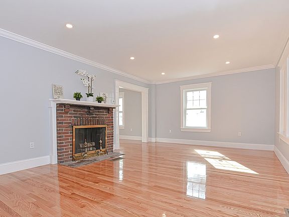 Beautifully renovated home with a versatile layout that can be utilized as either a 3 or 4 bedroom home! Enter the main door, and you're greeted by a large enclosed porch which then leads to the formal fireplaced living room. Open concept dining room overlooks a contemporary new custom kitchen with white Shaker cabinets, Quartz countertop, stainless steel appliances, designer tiled backsplash, and a breakfast bar. Truly a kitchen you'll enjoy cooking in! All bathrooms have been updated with a modernized sleek look, glass shower doors, and custom tile work surely to impress the eyes. Home offers many additional new big ticket upgrades, including hardwood flooring thruout, vinyl replacement windows, HVAC system, tankless hot water, plumbing, 200 amps electrical service, recessed lighting, etc. Exterior has a newly paved driveway, composite wood deck, patio, beautiful stone retaining walls, and a spacious backyard with freshly laid sod that is perfect for the kids to roam in.