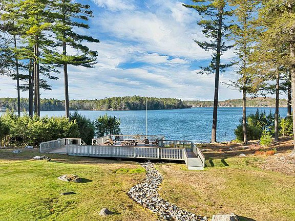 Welcome to 39 Harbor Way on Lake Winnipesaukee, offering carefree lakefront living with timeless style. This immaculate 3-bedroom, 4-bath front-row home enjoys unobstructed lake views across three beautifully finished levels, set amid manicured grounds in highly sought-after Winter Harbor. The open-concept main level features hardwood floors, a spacious kitchen, dining, and living area with a gas fireplace, all opening to a private sundeck with electric awning—ideal for entertaining or relaxing lakeside. Upstairs, the primary suite captures stunning lake views, joined by two additional bedrooms and a full bath.The walk-out lower level offers a sunlit family room with a second gas fireplace, access to a private patio, a third bedroom or office, a ¾ bath, and ample storage. An oversized garage is included. Pine Harbor spans 34 acres with 34 residences and 700’ of pristine shoreline, featuring a sandy beach, sunset deck, dock or mooring usage, kayak storage, and a pickleball/tennis court only minutes to downtown Wolfeboro restaurants and shopping. Open house Saturday December 20th from 10:30 tp 1:00.