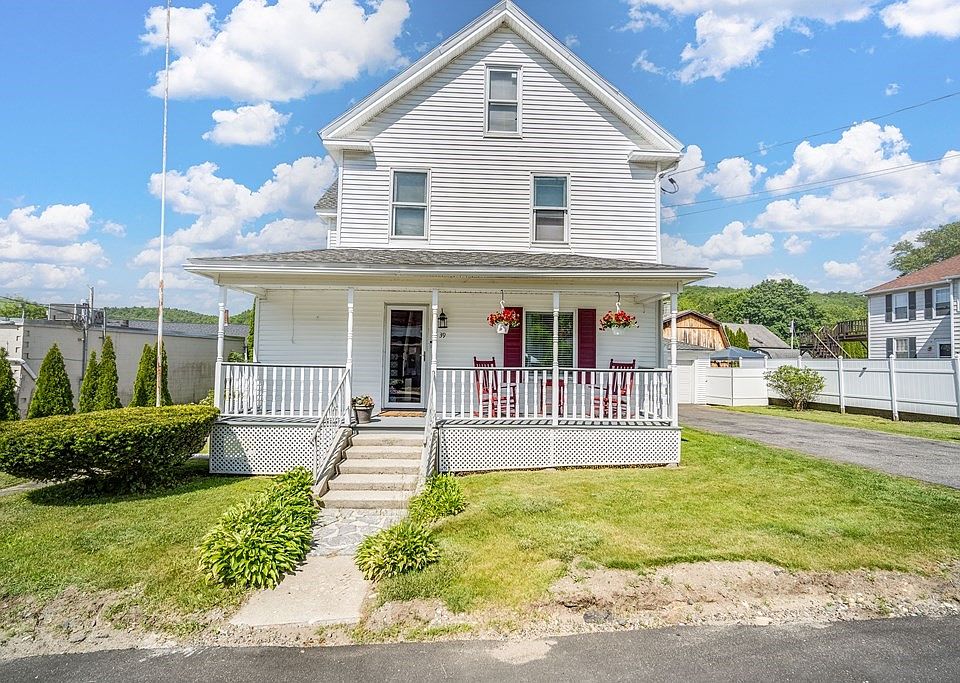 This well-maintained colonial home with beautiful front and back porch, newer roof, vinyl siding and roomy two car garage is ready for you to move in! An open floor plan for dining room and living room area, spacious kitchen with a beautiful island, and cozy bonus space, gives you more than enough room to entertain. The home has a full bath on the first floor and a full bath alongside three comfortable bedrooms on the second floor. The master bedroom has a walk in closet. If that is not enough room for you, there is a clean, ready to finish walk up attic - more space to make this home yours! The basement is neat and spacious, ready for your imagination. This home has a quaint, easy maintenance fenced backyard that will give you enough room to enjoy the outdoors. Located few minutes from the highway, 30 miles from Worcester, in the center of Gilbertville. Beautiful country living, this one is a must see! Open house 6/17 and 6/18- 12:00- 2pm