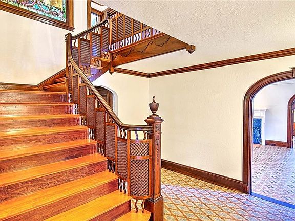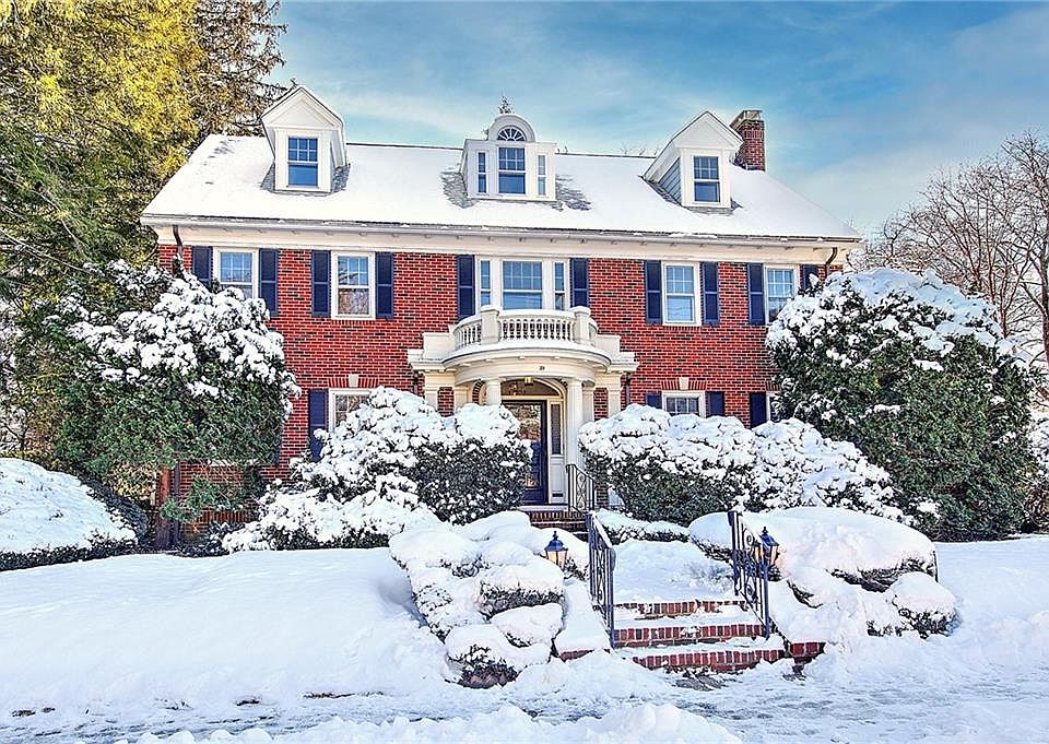 Estate Sale. Gracious 1930 brick Colonial, beautifully positioned on a sunny corner lot in the desirable upper Elmgrove neighborhood. Offered for the first time in over 60 years. This exceptional home showcases unique custom interior details seldom found in properties of this era. A grand entry foyer welcomes you with a sweeping, exquisitely detailed staircase, stained leaded-glass doors and interior windows, elegant curved doorways, and a striking tiled floor. The spacious living room features a marble fireplace with a handsome wood surround and opens to a bright sunroom or potential office with quality built-in desks and bookcases. The living room, sunroom, and formal dining room each boast distinctive tile floors with unique patterns and colors. The kitchen, updated in the 1980s, opens to a sun-filled family room addition with multiple skylights and a glass door leading to private side and rear patios—perfect for indoor-outdoor living. A powder room and mudroom complete the first level. Upstairs, the 2nd floor offers a primary suite with abundant closet space, a dressing room, and a private bath that connects to a possible office or additional bedroom, along with two other generously sized bedrooms and a family bath. The 3rd floor provides even more living space with three bedrooms and a full bath. Additional features include a finished lower level and a convenient two-car attached garage. Exceptionally well maintained, this solid custom home is ready for its next steward.