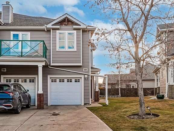 *Open House Saturday November 8th, 12-2PM* Welcome to this beautiful corner-unit walk-up bungalow condominium that perfectly combines comfort, convenience, and style! With extra windows and abundant natural light, this home feels bright, open, and inviting from the moment you step inside. Featuring 2 spacious bedrooms, 2 bathrooms, and plenty of storage, the open-concept floor plan is ideal for both everyday living and entertaining. Maple hardwood floors flow through the main living areas, highlighting the spacious dining room and cozy living room with a vaulted ceiling, gas fireplace, and patio doors leading to a large, sunny balcony with a gas BBQ line. Perfect for morning coffees and evening BBQs. The kitchen is thoughtfully designed with a breakfast bar, double-door pantry, ample cabinetry, and generous counter space, ideal for cooking and gathering. The primary suite offers a large walk-in closet and private 4-piece ensuite, while the second bedroom is great for guests or a home office. A main-floor laundry room with cabinetry and central vac, plus energy-efficient in-floor heating, adds to the home’s comfort. You’ll also love the attached, drywalled garage with a workbench and extra storage. This professionally managed complex boasts one of the strongest reserve funds in the city and an exceptional location, steps from the Hanson Ranch Wetlands, parks, and pathways, with easy access to Stoney Trail and nearby shopping. Bright, inviting, and perfectly situated, this corner bungalow townhome offers a lifestyle of ease and connection, with nature right outside your door.
