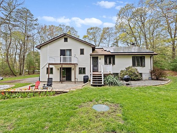 This is an amazing home in an incredible location. Take advantage of the Freetown State Forest as your abutter with trails leading in right from your backyard. Access hiking, mountain-biking, dirt-biking, horse-back riding, cross-country skiing, & more right from your own back yard! This multi-level 3BR home has so much to offer, with beautiful hardwood floors in fireplaced living room, dining room & kitchen. Kitchen has granite counters with eat-at peninsula & access to backyard. Family room on separate level with sliders to back yard. This home is set nicely off the street amongst the trees with beautiful front and back yard. There is potential for an in-law, au-pair, guest quarters or home office in the finished basement with two rooms, separate living room with its own fireplace, full bath and potential kitchenette. Garage is also heated and home offers generator hookup. Country living with great highway access & new commuter rail station 2.5 miles away! OH Sat 10-12 & Sun 1-3.