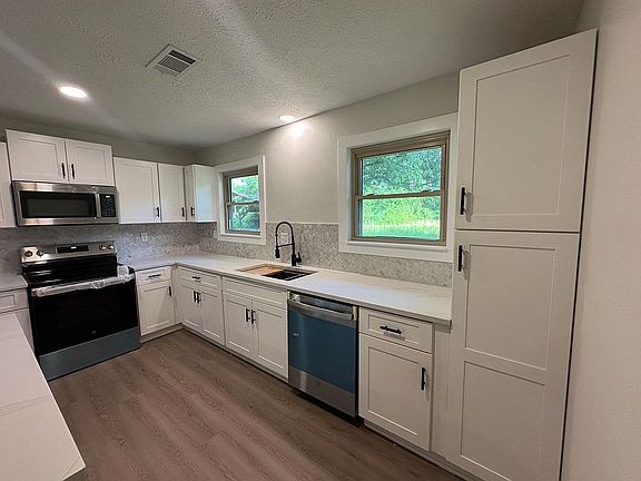 3 bed, 2 bath home sitting on one acre was taken to the studs in 2024. Completely rewired, all new plumbing and central heat/air. Exterior has updated siding and a textured matte black metal roof. Interior has new luxury vinyl plank flooring throughout. Open concept kitchen, living room and dining. Kitchen features large island, soft-close cabinets, quartz countertops and new stainless Samsung appliances. Large laundry room has ample cabinetry and new 50-gallon water heater. Finishing touches being completed in the master suite. New pictures will be uploaded upon completion.