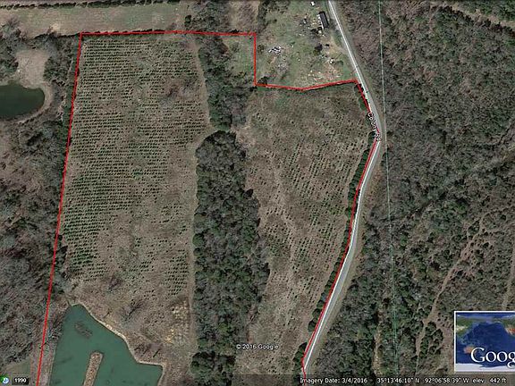 28.61 acres of pine and hardwood with some pasture. It has a 3-4 ac pond with an island. Highway frontage and also frontage on county road. Has an old rock house that has been partly remodeled but needs more work to complete. Also other barns and sheds. Excellent hunting property with lots of deer. Make this your own get-a-way place.