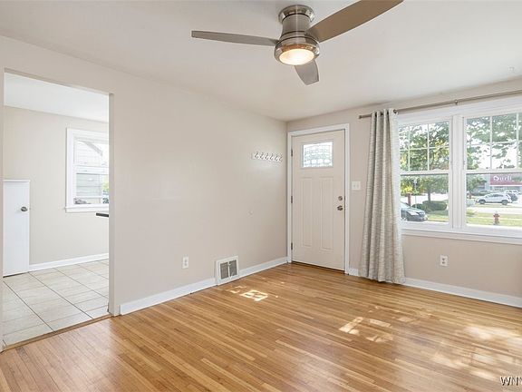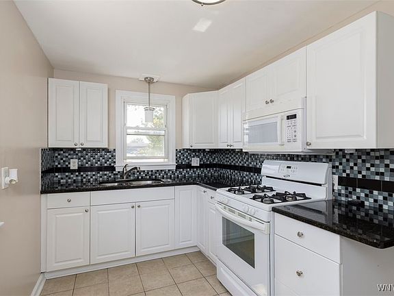 What a find...a North Buffalo 2 bedroom/2bath ranch home that's move in ready. It features beautiful oak hardwood floors and ceiling fans in the living room and bedrooms; an updated kitchen with granite countertops, tile backsplash and white appliances (stove, refrigerator, microwave) and an updated bath with tub/shower combination. The basement has glass block windows; a large finished rec-room with 2 closets and a full updated bath with step-in-shower and recessed lights. Other standouts include 6-year -old roof, gutters, and vinyl siding; replacement windows and updated light fixtures throughout; a fully fenced yard; a double-wide concrete driveway with newer 2-car garage & 2-year-old garage door; newer hot water tank (2021); central A/C; and 5-year-old electric line and circuit panel. Walk to Target, Anderson's, Tops, and Applebee's.