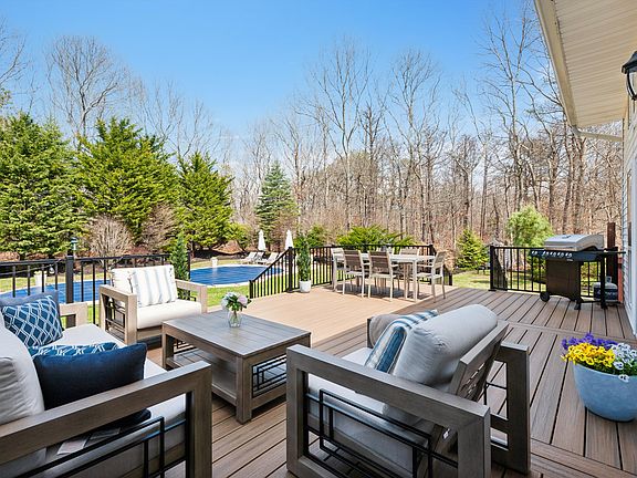 Rental Registration #: 230943 Summer 2026 starts in Westhampton's popular Mill Pond neighborhood: With 5 beds and 3 1/2 baths there is room for everyone at 39 Hollow Lane. Located at the end of a quiet and leafy Cul de Sac, you've found the perfect base for summer fun, with a heated pool, lush landscaping, and the area's newest tennis and pickleball club just a half mile down the road.The first floor features plenty of space with a front sitting room (with a gas fireplace), beautiful dining room, eat in kitchen, and large den with TV and comfortable seating. Open the doors to backyard relaxation on the new and expansive deck, and gorgeous nature landscaping. Upstairs is the primary en suite with king bed, jacuzzi tub and shower, and three additional bedrooms: one with twin beds , one with a queen, and another with both a queen and trundle daybed. This large room can double as an upstairs den with its office area, extra seating and a TV. In the lower level is an additional apartment with exercise room, bedroom, living room with TV, wetbar, and separate access to the backyard. Tesla charger in the garage.Conveniently located in Mill Pond, home of Tennis at the Barn, and only minutes from Westhampton Beach Village. Tenant has the option to purchase passes to all Southampton Town Beaches and Westhampton Beach Village Beaches. 39 Hollow Lane is only 70 miles from Manhattan- Less traffic equals more relaxation!