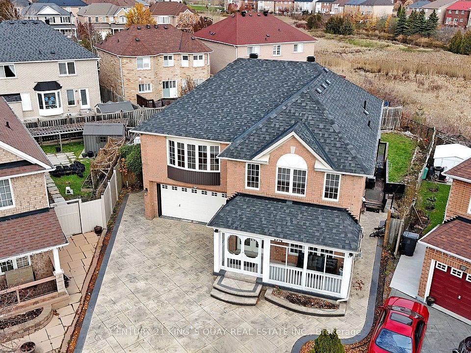 Beautiful and spacious family home-one of the largest models in the subdivision-backing onto a private ravine with an oversized pie-shaped lot. This property features 5 bedrooms on the second floor, including two with ensuite washrooms, plus a large upper-level laundry room. The main floor offers a versatile office/bedroom, hardwood flooring throughout, porcelain tiles, flat ceilings, fresh paint, and pot lights inside and out. Enjoy a huge deck off the main floor with built-in storage underneath, perfect for entertaining while overlooking the ravine. Exterior features include a stamped concrete driveway with parking for 7 cars plus a 2-car garage. The finished lookout basement includes a 2-bedroom apartment with a separate entrance and ensuite laundry. The basement is currently tenanted. Prime location-minutes to Hwy 401/407, Pickering, and Markham; walking distance to shopping; and TTC at the end of the street.