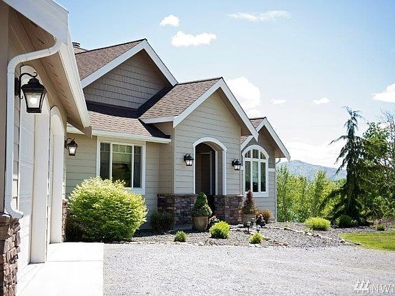 SPECTACULAR LAKEFRONT Custom Home on Aeneas Lake west of Tonasket. 5+/-ac irrigated, 4 bd, 2.5 ba. Living room w/prop Fireplace, vaulted ceilings, deck w/lake view. Kitchen w/granite, island, BBar, pantry, prop cooktop. Dining rm, screened sunroom w/prop Fireplace. Mstr bd/bath suite w/dble closets, heated tile flrs, soaking tub, sep tile shwr. Hardwd/tile/slate floors, 2-car garage. Basement w/family & rec rms, util rm, storage, patio. Landscaped yard w/sprink sys. $427,900 H-2583/MLS1293958