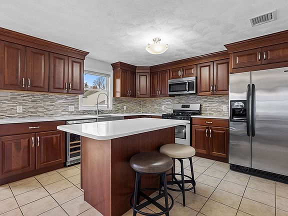 Stunning East Saugus Single Family home. This 1872sf split-entry raised ranch offers 3 bedrooms, 2 bathrooms, a finished basement, and 6 off-street parking. This 0.26 acre lot with a large deck, patio, and an oversized fenced-in yard is perfect for hosting. Renovated kitchen features SS appliances, quartz countertops & island, gas cooking, dining space and private deck access. The attached garage offers two over-sized parking spaces and plenty of extra storage. Direct entry to the finished basement, boasting nearly 700sf of living space, a kitchenette w/ a newer electric stove, full bathroom, and patio access. Laundry in the basement and Central AC. Steps from the Saugus River and Marsh View Park. Close to Rt 1, Revere Beach, Square One Mall, Logan Airport, and all of the great shops & restaurants in the Saugus area. Offers due by 3pm Monday (4/29).