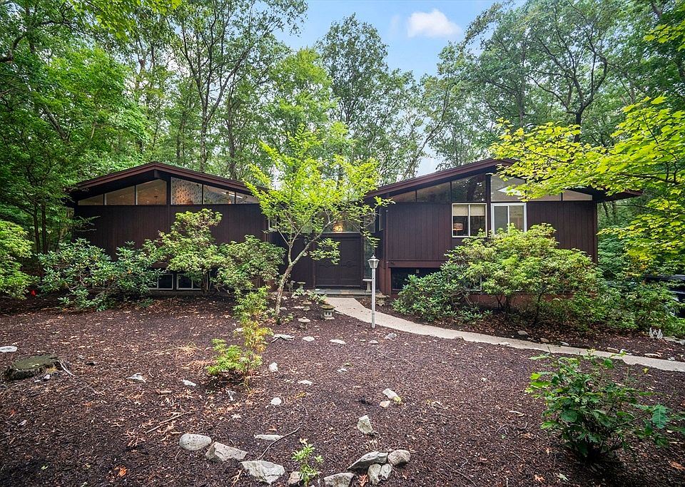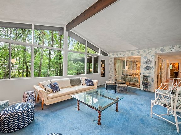 Discover Mid-Century Modern elegance in this stunning contemporary home nestled in a highly desirable South Natick neighborhood. Set on nearly an acre of wooded privacy on the Dover line, this appealing home offers 4 bedrooms, 2.5 baths+ & 2,488 sq ft of thoughtfully designed living space. Soaring vaulted ceilings, walls of windows & an open floor plan create a light-filled, sophisticated atmosphere throughout. The spacious living & dining areas boast dramatic ceilings, a fireplace & sliders to the sunroom & screened porch, perfect for indoor-outdoor entertaining. The stylish kitchen offers Corian, tile flooring, a vlt'd ceiling, gas cooking & SS appliances. A luxurious main-level primary suite includes an updated private bath, vaulted ceilings & an oversize closet. The lower level boasts a 23x12 fplc'd familyrm, guest bedroom (or office) & a bonus Redwood spa space leading to the greenhouse! 2015 Central Air, gas heat, Title V pass, 6 updated windows, 2022 upgraded driveway & new roof