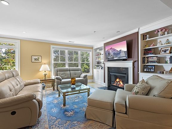 Very desirable first level unit with 2 car assigned parking by front door. Many upgrades including Sonos Audio System throughout, maple floors, Closet by Design custom shelving, custom window shades, high ceilings, custom built in and gas fireplace, luxurious and spacious master bath, open floorplan, light and airy, deck. Association Gym/function room with kitchenette, and large locked storage unit in basement. Well run and maintained association. Walk to town shops, restaurants, harbor, and public transportation. Easy living! Parking # 13 & 14 just to left of front door. Pet friendly, max two pets 30lb limit, breed restrictions, see rules and regs.