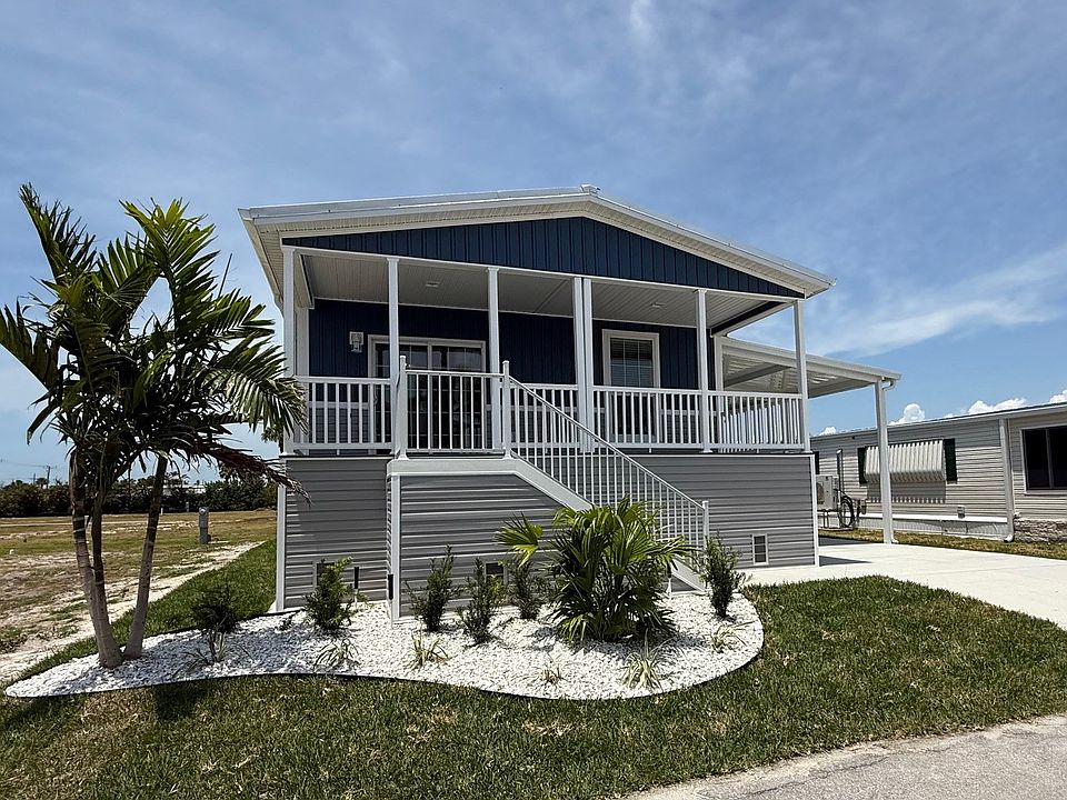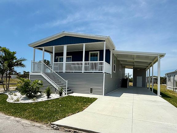 This brand new Skyline home is now move in ready! This large 2 bedroom 2 bath boasts approx. 1,200 sq. ft. and has a beautiful open floor plan. This home is stunning inside and out with its LVP flooring throughout, large kitchen island, crown molding, soft close cabinets, ample storage, and a front porch to sit back and enjoy the beautiful breezes and sunshine. This home also comes with a huge carport and an outside storage shed for additional storage. Call a Representative today to schedule a showing.