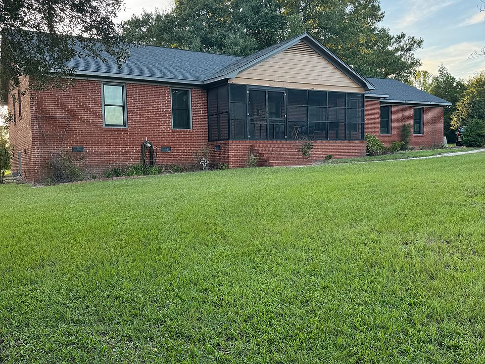 3 bedroom 2 full baths brick ranch home located on the corner of hwy 102 and Jesse Gaskins Rd with 2 acres. Home has 2 screened in porches, fenced in back yard, garden area with fruit trees. Double car attached garage with washer and dryer hook ups. Cats and dogs 35 lbs and under ok. Aggressive breeds and mixed breeds not allowed. Renter responsible for all utilities and lawn care. Parking includes attached double garage with four spaces in the driveway. Fenced in backyard great for pets with dog doors. No smoking allowed. Home is handicap accessible. Home has brand new roof, Anderson windows and brand new HVAC.