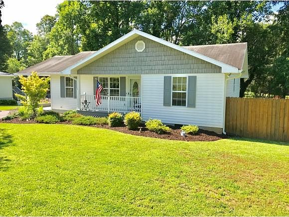 Nestled in the hills of east Tennessee this one level ranch is truly move in ready. Featuring three bedrooms and two full baths. With excellent light, brushed antique bronze fixtures and crown molding throughout, the floor plan lends itself to a well thought out design. The great room features vaulted ceilings and hardwood/laminate flooring. With the master bedroom separated from the other bedrooms, it consists of an on-suite bathroom with a shower and a single bowl vanity with generous walk in closet. The other two bedrooms with ample closet space are located quietly on the other side of the home. The second large bathroom offers a tub/shower combo and a separate toilet room. There also is a nice size double bowl vanity. A fully equipped kitchen with large eat in area boasts all stainless steel appliances. Off from the kitchen is a functional mudroom. The entire kitchen is tiled and has a sliding glass door to the back covered porch. Relax and enjoy the soothing sounds of the creek. The back porch is truly a pet lovers and kids dream due to the accompanying fenced in back yard that gives the homeowner piece of mind. Immaculate landscaping, new heat pump, energy efficient upgrades, attached carport and maintenance free siding, this home is ready for one who needs a truly move in ready excellent condition home. Buyer/Buyers Agent to verify all MLS info