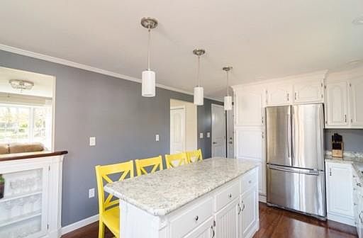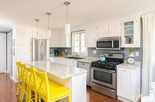 One of a kind!! Completely renovated Garrison Colonial in quiet family neighborhood. Some of the features include central air, gas heat, hardwood floors, full basement, full attic, and maintenance free vinyl siding. You will truly enjoy entertaining with the new kitchen that consists of stainless steel appliances, gorgeous cabinets, wainscoting,and a custom kitchen island with a built-in wine rack. The kitchen opens up to the dining room and living room area that make it an ideal open floor plan. Relax and enjoy the a fire-placed living room complete with beautiful hardwood floors with a over-sized bay window that fills the room with natural light. Recent updates include renovated bathrooms, freshly painted throughout, new crown moldings, new exterior doors, new oak stair treads, and new electrical fixtures. The deck and private backyard are perfect for entertaining. Convenient location, close to everything, including commuter rail and Braintree's red-line. Welcome Home!