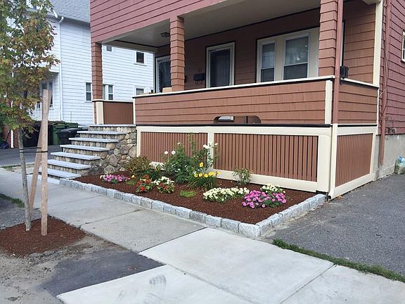 Recent renovation! Perfect location"" CAMBRIDGE/ WATERTOWN LINE "" 3 bedroom apartment has a large Open living room, dining room & Stunning kitchen and bath. Bordering Cambridge, right on the bus line to Harvard Square as well as Watertown and Waverly Square. Great lifestyle: bike or take bus to work, walk to restaurants, grocery store and well known ethnic bakeries such as Sevan and Massis or Sofra Cafe. Three minute walk from apartment to the 71 and 73 buses & short drive to Memorial and Storrow Drive for quick access to Cambridge and Boston. Includes two parking spaces, off-street and in driveway. Apartment was completely remodeled! New granite front steps, complete kitchen renovation with granite countertops, new cabinets, all new stainless steel appliances, new bathroom, new laundry area with brand new washer and dryer. Ring Doorbell & Nest Thermoset" Huge three season front porch and open back porch. Large landscaped yard with pear tree and grapevine"