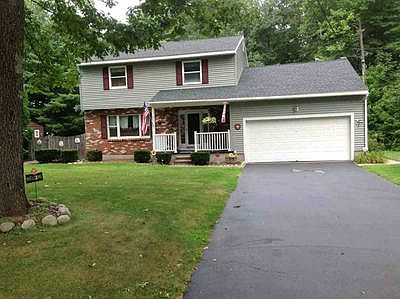 A double lot with a cozy 1 & 1/2 story home with a 2 car garage. 4 bedrooms with a bath up & down. LR w/insert FP, eat in galley Kit w/laundry & formal dining room, enclosed porch, spacious deck, private yard with fenced in ground- pool 16ft x 36ft. Lot size 250 x 200 land. Incudes a finished basement with a den area, an office with a Jacuzzi tub and storage areas with shelving, workshop and exercise room.14 x 14 storage building. Pool building 8.5 x 6.5. Extensive garden areas. Private back yard and surrounding woods. 3 season enclosed porch 12ft x 21ft. Spacious outside deck 21ft x 16ft.