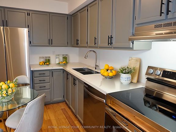 Welcome to 39 Knightsbridge Way-a charming condo townhouse community nestled among the mature ,tree-lined streets in Markham Village. This is a rare opportunity to own your own home in an established neighbourhood with minimum maintenance, providing a carefree and convenient lifestyle at an affordable price, A perfect starter or great investment opportunity !This bright thoughtfully updated unit offers N/S exposure, functional layout suitable for small families, professionals , downsizers alike. The unit has been freshly painted thru-out, sanded Bamboo floors , Spanish tile , pot lights in kitchen, new light fixtures, new s/s kit. appls. brdlm on stairs and lower rec room, new doors & hardware, furnace(25) washer & dryer. All ready and waiting . Step outside to your private patio & garden style backyard backing to walkway and greenspace. Perfect for peaceful relaxation! The lower level recreation room offers a bonus space for office, play room or guest suite as well as ample storage . Many units in the complex have added a kitchen island by removing the partition wall -- potential to personalize is here!!Note the large primary bedroom has potential to convert the walk-in closet into an ensuite. Ample visitor parking is available, highly walkable location near parks, schools, transit & shopping. Minutes to MS Hospital, Hwy 7 &407... William Armstrong Public School, Markham District High, Edward T. Crowle Public & French Immersion. Virtually Staged. Don't miss this opportunity.