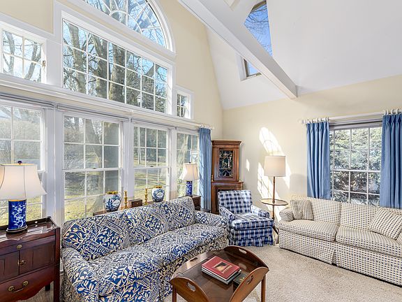 An exquisite 4 bedroom townhouse that lives like free-standing home without all the exterior maintenance demands. You are greeted by a two-story foyer that leads to a sun-filled living room with vaulted ceiling and cozy fireplace. A beautifully appointed eat-in kitchen has French doors that open to a private flagstone terrace and grassy yard. The first-floor master suite enjoys a bow-window and spa bath. A full dining room and powder room complete the first floor. Upstairs you will find 3 generous sized bedrooms and two remodeled bathrooms. These bedrooms could also serve as a home office or rec room. This unit has an attached garage and an enormous basement for storage or expansion. Walkable to the downtown village, schools or Mead Park. A manageable trip to Greenwich, Brooklyn or Manhattan.