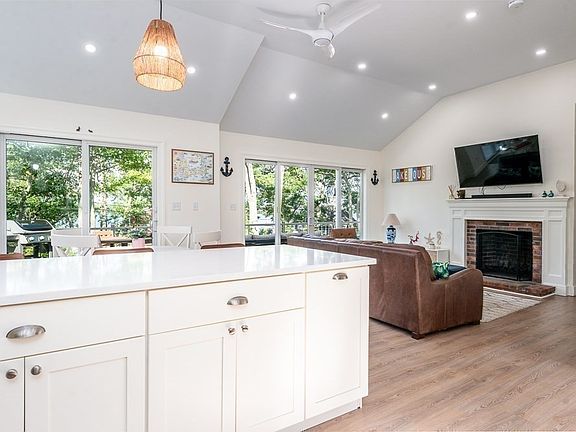 Experience the charm of Wequaquet Lake at move-in-ready retreat. Beautifully renovated home is entirely updated inside & out, boasting new roof, chimney, windows, & siding, along with a carefully designed interior. Upon entering, find a bright, open living area featuring a welcoming fireplace, quartz countertops, & sleek kitchen cabinets, ideal for entertaining or relaxing. Featuring new bathrooms, luxury flooring, & partially finished lower level that's great for games, movies, or indoor entertainment on rainy days. Modern conveniences include all new mechanical systems, electrical service, HVAC, and water heating systems, ensuring your peace of mind. Outside, you'll discover a new maintenance-free deck with stainless steel cable railings that invite you to relax & enjoy expansive lake views during the day. In the evenings, gather around the fire pit. Whether you're enjoying the sunsets or hosting lakeside get-togethers, this property is designed for pleasure.