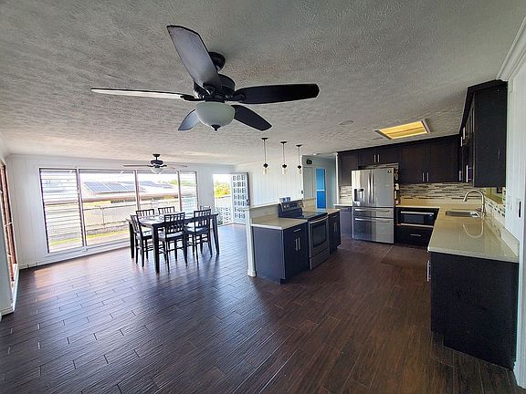 Newly remodeled home, great location on a dead-end street. Steps to the Municipal golf course in the coveted Waiakea District. Near local shopping, restaurants, and less than 5 miles from the nearest beach. Elementary, middle, and High Schools are all nearby. Entire home remodeled and fully permitted. New flooring with sub-floor, recently painted inside and out, updated bathrooms, two of the showers are oversized, designed for two people. Master bath includes a shower bench, a soaker tub, and a toilet with a bidet. All rooms have large fans and crown molding throughout. Roof recently pressure-washed, treated, and painted. 13 photovoltaic panels with HELCO Net Energy Metering (NEM), owned system (not leased). Two additional panels for the solar hot water heater system. Home tented last year (2024) by Pacific Termite. Large yard with tons of mature fruit trees such as tangerine, lime, orange, banana, coconut and vanilla vine. Home is move-in ready for its next amazing family!