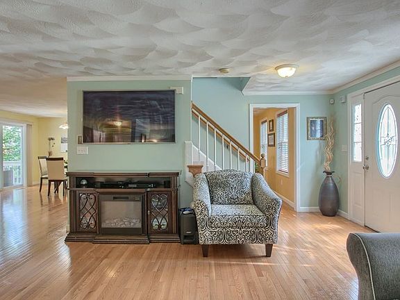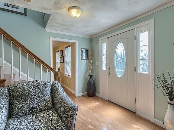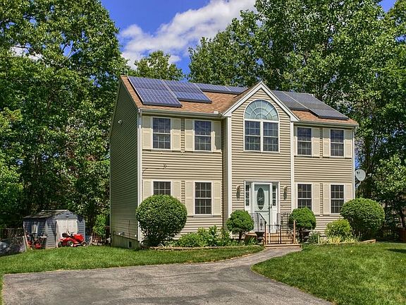 Wonderful colonial, with an open concept floor plan, that has been well maintained and tastefully upgraded, sits at the end of a cul de sac waiting for a new owner. Sparkling hardwood floors adorn the first floor and reflect the natural light that's cast through the large energy efficient windows. The slider off the dining room spills out onto a multi-tiered deck overlooking the backyard. The upstairs has a master suite complete with a full bath, and cathedral ceilings. The other two bedrooms have great closet space, and another full bathroom to share. There's even space upstairs for an office area. The basement has several finished rooms that can be used as a work out room, spare bed, office, or even play room. Solar keeps electricity consumption down, while the central air conditioning will keep the temperatures down in the summer. Great opportunity you won't want to miss.
