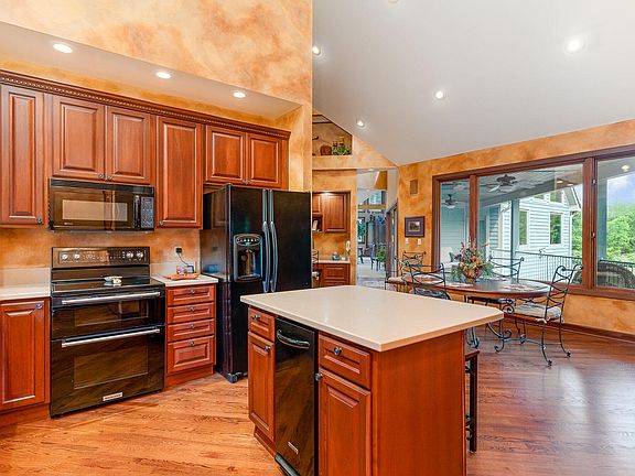 - Features: Walk-Out Access, Wood Flooring, Kitchen Island, Eat-in Kitchen, Wood Cabinets, Solid Surface Counters, Hardwood Floors
