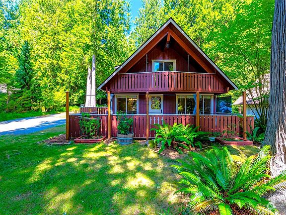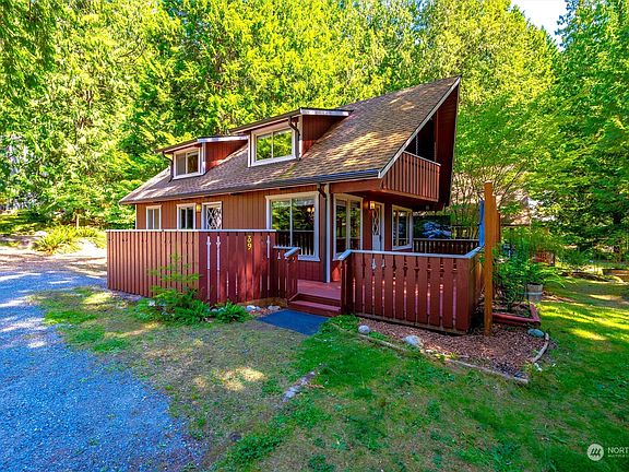 Step into a world of charm in this cozy vintage cabin with modern touches. Meticulously refurbished in 2020, this home is in pristine condition, w/ new stainless appliances, new carpeting, and other updates. Be greeted by beautiful beams & natural 2x6 tongue & groove ceiling. Enjoy mountain views from the balcony & large wrap-around partially covered deck. The flat, sunny South-facing lot has plenty of parking & is surrounded by stunning cedar trees and ferns. The encapsulated crawl space with new insulation ensures the home remains efficient and comfortable throughout the year. New roof in 2020, brand new exterior paint, and wired for a generator. A newly painted, lofted 10x10 shed with power is great for storage or as a workshop.