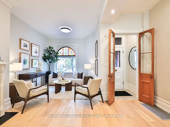 Stunning Heritage Victorian in the heart of Summerhill! Beautifully restored and thoughtfully updated, this exceptional home blends timeless architectural character with modern sophistication. Ideally located between Yonge Street, Summerhill, and Yorkville, it offers approximately 2,800 sq.ft. of elegant living space within walking distance to shops, cafes, restaurants, and the subway. Step inside to find new engineered white oak hardwood floors, a brand-new porcelain-tiled entryway, and freshly painted interiors, complemented by tall baseboards and a custom staircase with new railings and pickets. The main floor features a welcoming living room with a wood-burning fireplace, open-concept family and dining areas, and a renovated kitchen with quartz countertops, matching slab backsplash, centre island, gas cooktop, stainless-steel appliances, and a walk-in pantry. Upstairs, the primary suite offers a serene retreat with a five-piece ensuite bath, built-in storage, and dressing area. The second bedroom features double closets and its own ensuite, while the third-floor office/den and bedroom opens to a south-facing patio with skyline views-perfect for morning coffee or evening sunsets. Additional upgrades include "Vantaa Fog" designer wallpaper by Seabrook Wallpaper, premium "Absolute Series" Solar Shading Systems, added pot lighting, and heated basement floors. Exterior highlights include a separate front entrance to the lower level, a garage with a green roof, and a beautifully landscaped private garden with a newly rebuilt back deck. A truly special opportunity on one of Toronto's most picturesque, tree-lined streets, just steps from Summerhill's boutiques and Yorkville's world-class shopping and dining.
