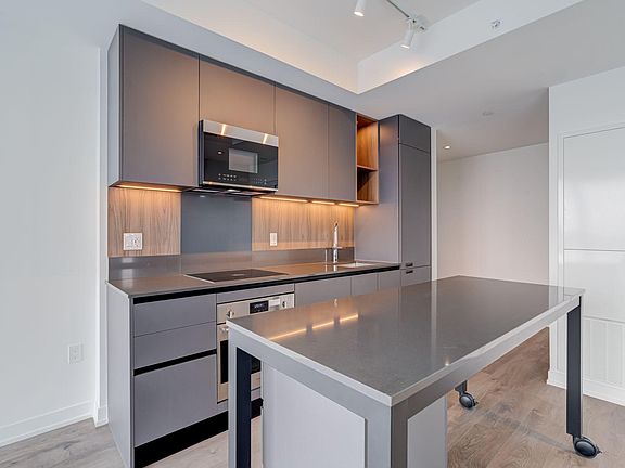 Experience luxury lakeside living at Debut Waterfront Residences in Downtown Barrie! The very first High-Rise in Barrie is here, brand new, never-lived-in 1-bedroom + spacious den (can be used as a bedroom) condo features 2 full bathrooms, including a private ensuite. Bright and open with 9-ft ceilings and floor-to-ceiling windows, this corner suite offers breathtaking views of Lake Simcoe and Kempenfelt Bay from your living room, bedroom, or private balcony. The sleek Scavolini kitchen is outfitted with premium Italian appliances, stylish cabinetry, and a versatile island/dining table. The large den is open to the balcony perfect for a home office or a second bedroom. Enjoy building amenities including an infinity plunge pool, fitness centre, yoga studio, BBQ area, and business centre. Located steps from Barries vibrant Dunlop Street, the waterfront, transit, and minutes to GO Station, Highway 400, and Georgian College. Comes with one exclusive covered indoor parking space. Utilities extra. A rare chance to live in the heart of it all dont miss out!
