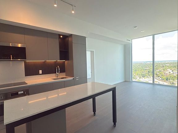 Contemporary eleganceExpansive floor-to-ceiling windowsWide-plank laminate flooringBeautifully appointed scavolini kitchenQuartz countertopsPractical islandSleek built-in appliances