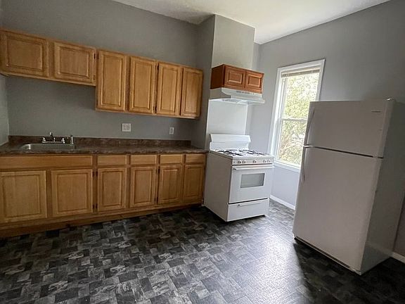 This freshly painted unit offers generously sized bedrooms, including an oversized primary bedroom that easily fits a king-sized bed and more. The updated bathroom features brand new tile flooring and a modern tile tub surround. The eat-in kitchen includes built-in shelving for added storage and functionality.