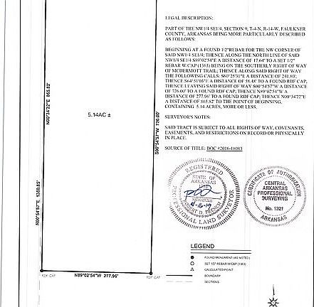 5.14 acres of land for sale. Located in Faulkner County, just outside of the Conway city limits. Top portion of the land is cleared and ready to build on. Bottom portion of the land is wooded. Enjoy amazing sunsets and views of the Arkansas River. Has Conway Corp. water and is ready for electric and septic. In Conway School District.
