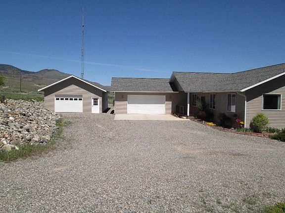 Beautiful home and the Location is perfect with panoramic views of the beautiful Salmon River Valley and Mountains from every window. Night time takes in the beautiful lights of the city and Salmon valley! Home is turn key, low maintenance and immaculate. The open floor plan features a very spacious living/great room, dining room, large kitchen with maple cabinets, tiled and laminate flooring. Spacious Master suite has a large bathroom with jetted tub, separate shower, double sinks and tiled counter tops and a built in vanity. Plus Spacious Master closet! Two more bedrooms share a bath with corion counter top plus tub/shower combination. Sliding glass doors open up to a large deck for those summer BBQ'S or just relaxing and enjoying the beautiful views of the Mountains! Attached double car garage with lots of storage. Detached 24X48 insulated garage/shop, buried 1000 gallon propane tank. Nicely landscaped fenced and secluded back yard with lawn and garden area. There is another well on lower acre. There are water rights from Arrowhead irrigation. Lots of extras! (Agent is wife of the Seller)