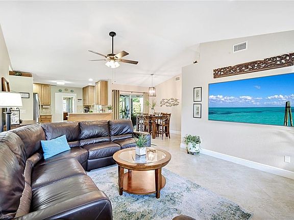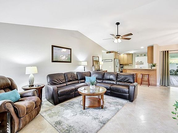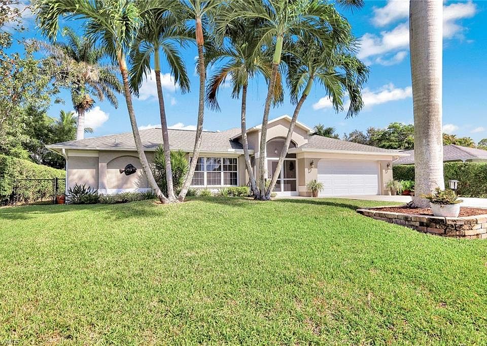 Discover this awesome Willoughby Acres home offering exceptional space, privacy, and timeless Florida charm! Situated in the heart of North Naples, this residence features a huge fenced-in backyard, perfect for outdoor living, entertaining, or even a future pool. Enjoy the freedom of living in a highly desirable community with no HOA fees. Step through the double door entry into a bright, open living area with 20-inch tile flooring, vaulted ceilings, and abundant natural light. The kitchen includes upgraded wood cabinetry, granite countertops, stainless steel appliances, and a custom tumbled marble backsplash, ideal for cooking and entertaining. The spacious owner’s suite offers dual walk-in closets and a beautifully remodeled bathroom featuring dual sinks and custom tiled shower. Each guest bedroom includes a walk-in closet, and the oversized laundry room provides additional flex space and storage. Step outside to the expansive screened lanai, complete with an above ground spa and terrace overlooking the private backyard; it’s inviting space to unwind or entertain. Electric and manual storm shutters offer peace of mind, along with a new roof in 2018 and a brand-new water heater. Collier County Public Schools shows this home is zoned for top rated schools. Located just minutes from Naples’ finest beaches, dining, shopping, and entertainment. This home perfectly blends comfort, style, and convenience.