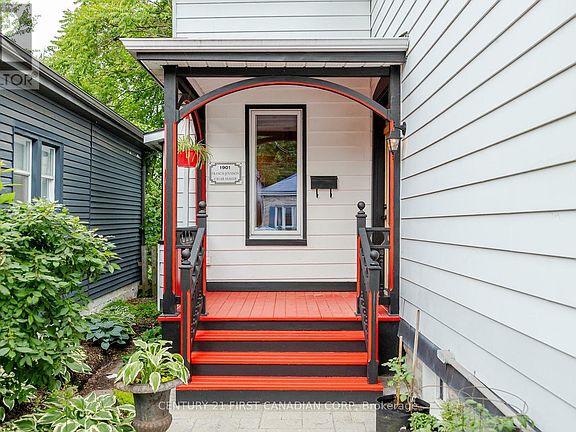 This charming century home, built in 1901, is nestled on a quiet street between Piccadilly and Pall Mall. The exterior retains the historic charm of its era, while the interior offers modern conveniences. Custom woodworking and stylish details are found throughout the home, including the charismatic red porch, solid white ash front door, and the newly renovated upstairs bathroom. The open-concept kitchen and spacious living room provide comfortable space for family gatherings and entertaining. The separate family room is brightened by a 9-foot-tall bay window and historic softwood flooring. The short, one-block street ensures minimal traffic, providing for relaxing evenings. The property includes a stunning, fully fenced, and beautifully landscaped backyard. The large private driveway provides ample parking space. Additionally, the home is within easy walking distance of lovely neighbourhood cafes and restaurants and all the amenities of downtown London and Richmond Row. (id:41440)