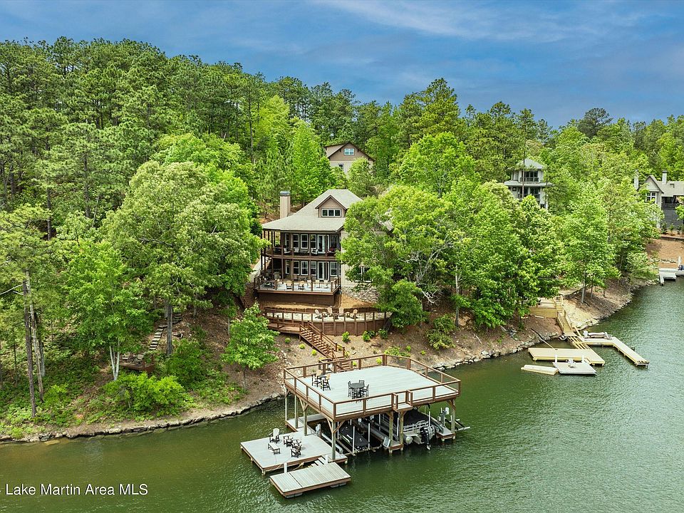 This home is Back on the Market at no fault of the Sellers. The contingency on the sale of another home did not occur so now is your opportunity to own this fabulous home at a great price so Come Home to The Preserve at Stoney Ridge! PRIME location on the Eastern Shores of Lake Martin. This must see custom built 2.5 story home w/ nice views & great water depth has a massive covered 2-boat slip boathouse, w/lifts for your PWC & a triple oversized carport w/ workshop & loft above to build out for extra living area. Eastern-facing afternoon shade w/ plenty of parking. 4 bd/4bth, 2 living areas, F/P, 2 full kitchens, covered porches on upper & lower levels & an outdoor dining area, 2 laundry rooms, plenty of inside storage & closet space, hardwood & tile floors, plenty of windows for nice For those of you are in need of fiber optic then say no more as you have Point Broadband in the neighborhood. This home also has a central vacuum system. This very popular community is located in the heart of Lake Martin and is gated with community pool/cabana/pickle ball courts and stone seawalls throughout the entire community. Homes rarely come up for sale so put this one on your list to see. Great price for over 4,000 sq. feet. Ask your realtor to verify rental terms prior to presenting an offer with the HOA President as those may change and he will provide a copy of the C and R. Conveniently located off Hwy 34 West and easy access to Hwy 280 to Birmingham, Auburn/Opelika, Atlanta and surrounding areas. Very near restaurants and entertainment venues and golf is only 7 minutes away as well as Harbor Pointe Marina and The Ridge Marina. Make this one yours for the 2024 season and enjoy all that Lake Martin has to offer.
