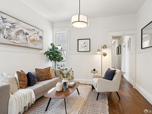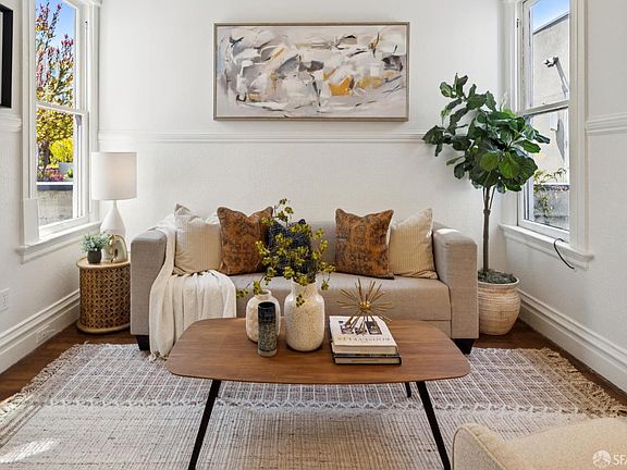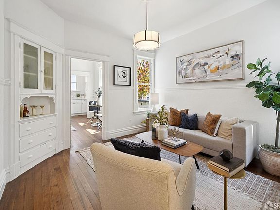 Own and enjoy a gorgeous piece of history for the price of rent! Seize the opportunity now and you will be glad! Top floor, with windows on three sides, this flat has tons of light with great period details. Front bedroom features a bay window & large closet. There is a bright eat-in kitchen refreshed with new cabinets, counter tops and open shelves as well as a utility room for an office or extra storage. Just past the back door, a landing provides space for a small gas grill where you can cook dinner as you overlook the lush shared garden. While you cook, others can keep you company from the adjacent living room, replete with an original built in, perfect for displaying a treasured collection or two. The flat throughout has newly refinished floors, new paint and mostly new designer lighting. The bathroom, with a spa-like original clawfoot tub, has been renovated with new tile floors and vanity. Shared laundry is accessed in the basement right next to a private storage room where you can keep all your gear and bikes. But the best thing about 39 Moss might be the location. From museums, theaters both movie and live, sports venues, to shopping and transit, you can enjoy the best of what San Francisco has to offer living on lovely and special Moss St.!