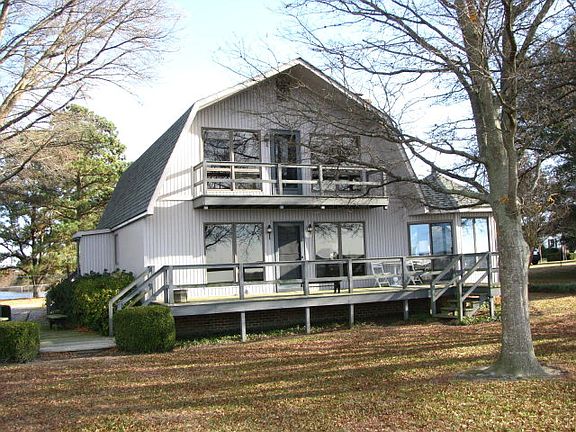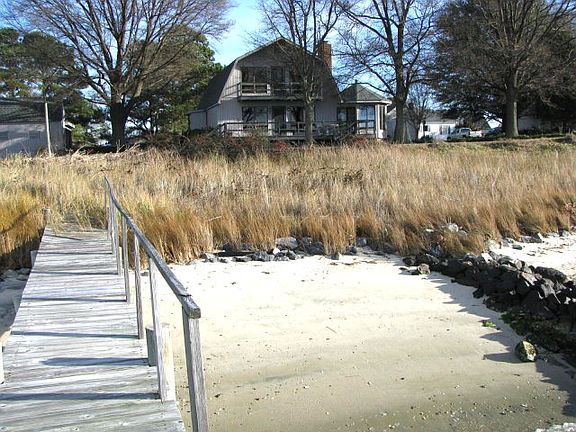 Fleeton home with sand beach, pier, wide views, and ownership of a 3+ acre pond with another pier. 3 bedrooms, 2 baths, family room with fireplace, sun room, 2nd floor balcony, deck, patio, dining room on waterside, detached 2-car garage with workshop & storage buildings, 158 feet of frontage + 1,700 ft. pond frontage, central sewer and water, priced below County assessment and recent appraisal.