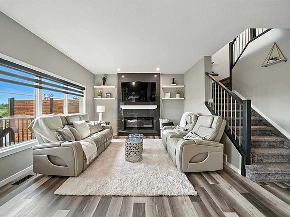 Visit REALTOR® website for additional information. This exceptional custom-built residence with A/C showcases over $100,000 in premium upgrades and an unparalleled attention to detail. The heated double attached garage—finished with epoxy flooring—doubles as a refined man cave or extra storage, while the home’s prime location backs directly onto tranquil green space. In sought-after Liberty Landing, Red Deer County —close to everything you need and enjoying the advantage of lower taxes.Step inside to a bright, open-concept main level with 9 foot ceilings & beautiful views. The living room, anchored by a stylish fireplace, flows seamlessly into the chef-inspired kitchen featuring a large island with breakfast bar, gleaming quartz countertops, upgraded tile backsplash, walk-in pantry, and an elegant dining area with glass doors opening to the deck for enjoying the outdoors. The main level also has a mudroom and 2 pc bath for convenience. Upstairs, a versatile loft connects to 3 bedrooms and 2 full baths, including the luxurious primary suite with walk-in closet and spa-inspired 5-piece ensuite. The convenience of an upper-level laundry adds to the thoughtful design. The fully finished lower level offers a spacious recreation room with a fireplace, & two more bedrooms —perfect for guests or extended family. Outside, the partially covered deck invites year-round relaxation while capturing the stunning, uninterrupted views of the surrounding green space. This home seamlessly blends refined design, modern comfort, and a coveted location—offering an extraordinary lifestyle