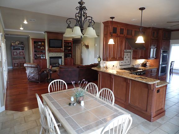 Beautiful custom built home just outside the city limits providing the quietness of country living, but just minutes from the necessities of the city! This generous 3 bedroom (with space to create a 4th bedroom or office), 2.5 bath home on a large 1 acre lot with wood privacy fence has so much to offer. Inside you'll find wood flooring, crown molding, upgraded light fixtures, and wood blinds throughout. It has a large, open living room with built-in cabinets and a gas fireplace. The spacious kitchen provides loads of storage space with pull out drawers in the lower cabinets, full size double ovens, commercial size gas cook top with stainless steel, upgraded appliances. The home also features two dining areas. The formal dining room could easily be converted to an office or 4th bedroom, and the other dining area is adjacent to the semi-open kitchen, provides plenty of room for a large table and has a large walk-in pantry. As you walk into the large master bedroom you'll notice it allows for a seating area or office desk, and is separate from the other bedrooms. The master bathroom features granite countertops, dual sinks, a large walk-in tiled shower, an oversized jacuzzi tub and a spacious walk-in master closet. Also within the home is a walk-in linen closet, coat closet, and utility room with nice wood cabinets and granite countertops for additional storage, and utility sink. House amenities also include an endless hot water system and soft water system, an indoor safe room to keep you and your family indoors during storms, an attached 3-car garage, front and back porches, mature flower beds, sprinkler system and so much more!