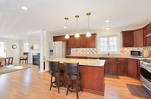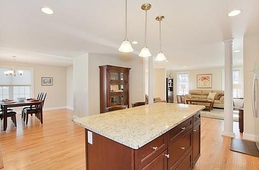 - Kit Dscrp: Flooring - Hardwood, Countertops - Stone/Granite/Solid, Recessed Lighting, Dining Area, Stainless Steel Appliances