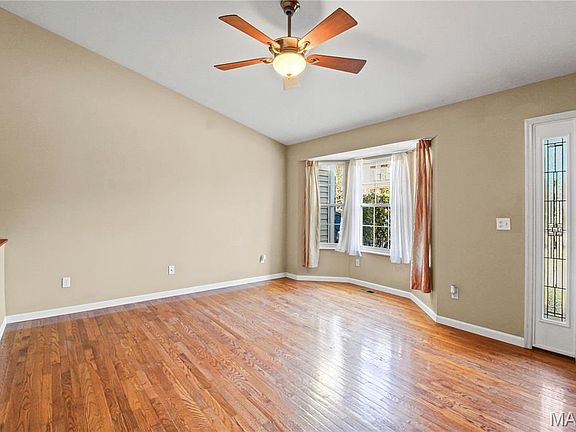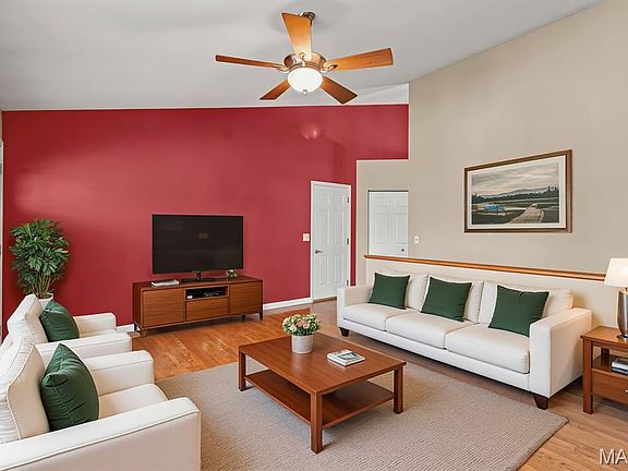 Welcome home to this beautifully maintained 2-bedroom, 2-bath villa in the heart of St. Peters! This desirable ranch-style floor plan features vaulted ceilings, wood floors, and a bright living room with a charming bay window. The kitchen offers quartz countertops, a space-saver microwave, tile backsplash, stainless steel appliances and a pantry. The spacious primary suite includes a jetted tub, separate shower, dual sinks, and tile flooring. Enjoy the convenience of main-floor laundry and a hall bath with an adult-height vanity and tiled tub/shower combo. The unfinished lower level is ready for your personal touch, complete with egress windows and a full bath rough-in, giving you endless potential to expand. Don’t miss this opportunity for low-maintenance living in a fantastic St. Peters location!