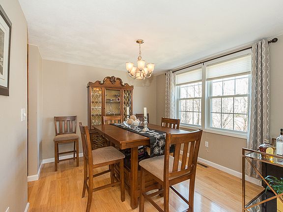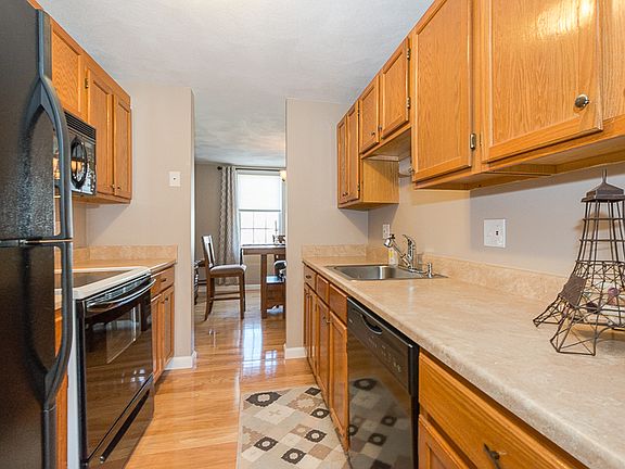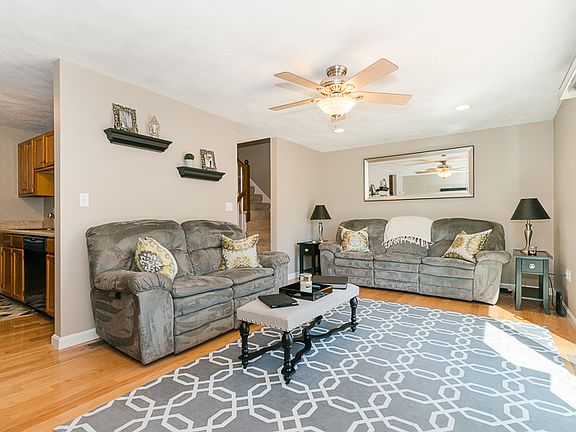 Impeccably maintained townhouse! first level features garage parking, Mud room, large coat closet, storage closet and a storage/utility room. 2nd floor has sunny dining room with exit out on to a porch that leads to a grass area. Great kitchen with plenty of room for storage and cooking. Large living room features hardwood floors and a sliding glass door out onto private deck with storage shed for outdoor furniture. Half bath in hallway. 3rd floor features 2 large bedrooms each with very large closets. Large bathroom accessible from both bedrooms. Laundry off Hall, central air, garage parking for one car , driveway spot for another car,professionally landscaped grounds, clubroom and tennis court