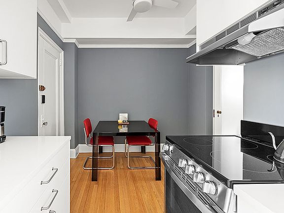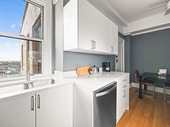 This exceptional, light-filled, gracious one-bedroom apartment immediately feels like home, thanks to its spacious layout, hardwood parquet floors, high ceilings, newly renovated kitchen, and, of course, the endless and incredible protected views.